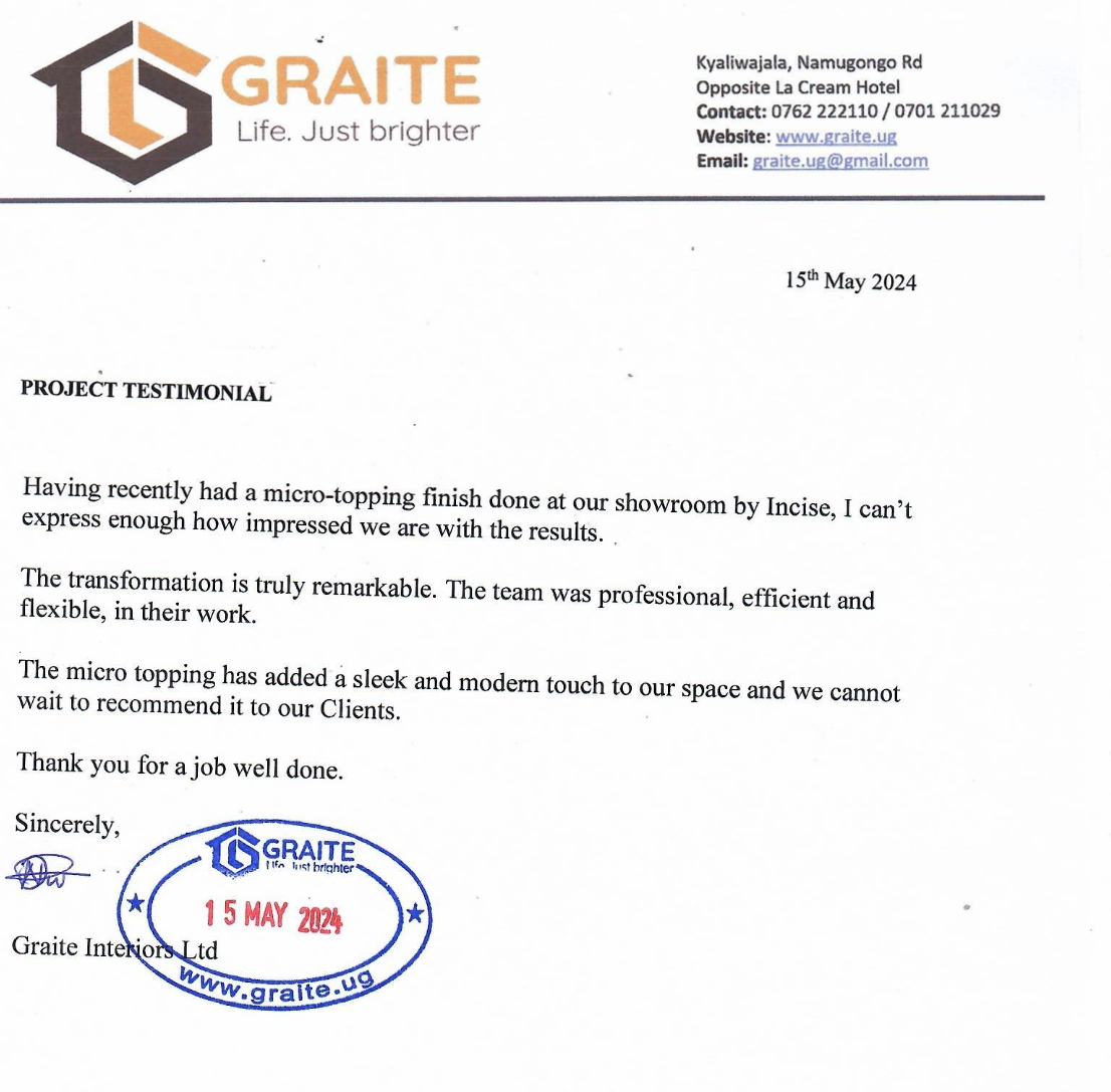 At INCISE, we believe surfaces should speak, impress, and inspire. We craft high-end decorative finishes that turn plain surfaces into statement pieces of art. From the sleek sophistication of Microtopping to the rich textures of Patio, Colour hardener, Metallic, WallCrete and CemWash, our products are designed to bring personality and polish to any space.